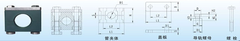 管夾體 | 蓋板 | 導(dǎo)軌螺母 | 螺栓 | |||||||||||||