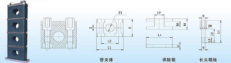 管夾體 | 保險(xiǎn)板 | 長頭螺栓 | ||||||||||||