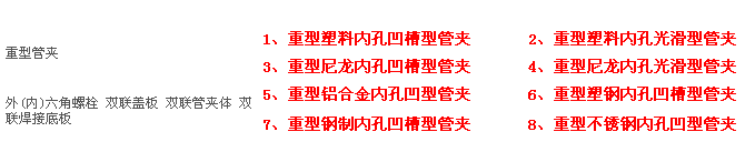 應(yīng)用領(lǐng)域:本產(chǎn)品適用于冶金,石油,化工,車輛,船舶,電力等機(jī)械液壓系統(tǒng)中的油、水、氣為介質(zhì)的固定管道。重型系列管夾適用于中高壓(PN≤31.5Mpa)管道固定。