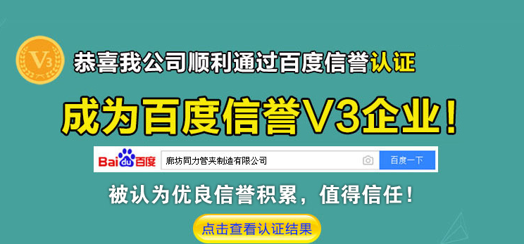 - 2018-08-28廊坊同力管夾制造有限公司網(wǎng)站順利通過百度信譽官網(wǎng)認證!